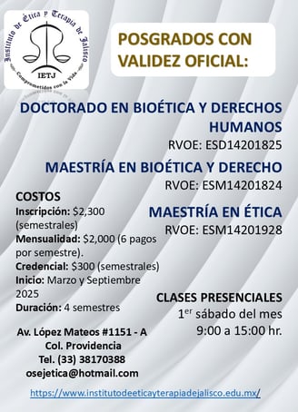 Ofrecemos posgrados en Bioética, Derecho y Derechos Humanos en Guadalajara, Jalisco, con Reconocimiento de Validez Oficial de Estudios.